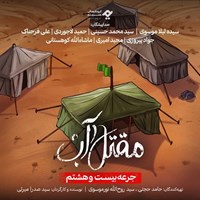 کتاب صوتی مقتل آب؛ جرعه بیست و هشتم نوشتهی سید صدرا میرئی اثری است نمایشی و روایی که با محوریت واقعهی کربلا و از زاویهی دیدی متفاوت شکل گرفته است. نشر آوایم آن را منتشر کرده است و کتاب صوتی با گویندگی گروه گویندگان و در قالب یک دراما پادکست عرضه شده است. در این قسمت از سریال، شنونده با ترکیبی از روایت، دیالوگ نمایشی، مونولوگهای طولانی و قطعات موسیقایی روبهرو است که همگی در خدمت بازآفرینی فضای عاطفی و معنوی روزهای منتهی به عاشورا قرار گرفتهاند. در مقتل آب؛ جرعه بیست و هشتم، شخصیتها نهتنها انسانها که عناصر طبیعت هم هستند؛ آب در مقام راوی اصلی ظاهر شده است و در کنار او چهرههایی چون ابلیس، شمر، عمر سعد، حر بن یزید ریاحی و دیگران در قالب صداپیشگان مختلف جان میگیرند. گروه فرهنگی هنری یزد این روایت شنیداری را بهعنوان بخشی از یک مجموعهی پیوسته تقدیم کرده است و شنونده را به دل صحنههایی میبرد که در آنها گفتوگوهای میان فرماندهان سپاه کوفه، تردیدها، تهدیدها، نامهها و فرمانها در کنار نجواهای درونی آب و ابلیس قرار گرفته است. این کتاب صوتی با تکیهبر فضاسازی صوتی، طراحی و ترکیب صدا و حضور چند صداپیشه، تجربهای نزدیک به نمایش رادیویی ایجاد کرده است؛ تجربهای که در آن، صدای آب، صدای طبلها، همهمهی لشکر و زمزمهی آیات و اذکار در هم تنیده میشود تا شنونده نهتنها روایت تاریخی، که حالوهوای عاطفی و اضطراب و امید جاری در آن روزها را لمس کند.